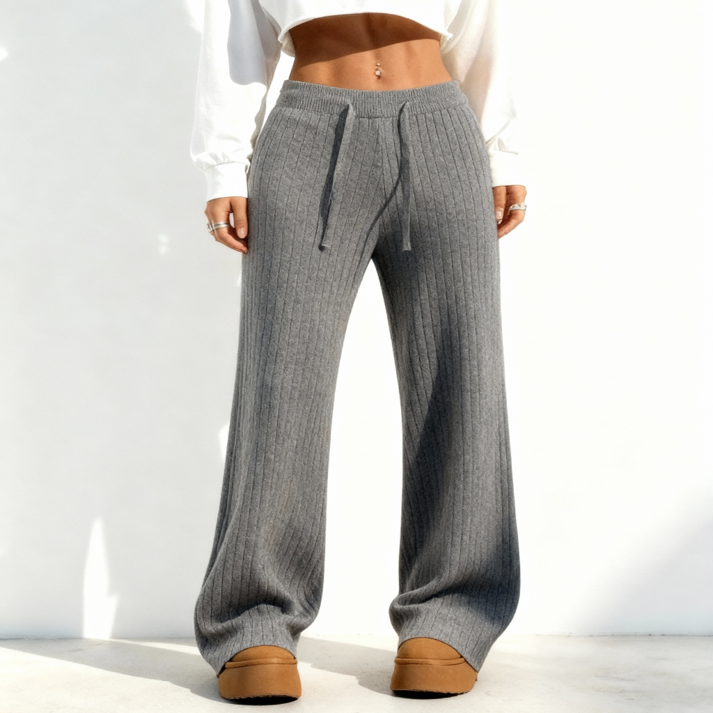 • Calças femininas de malha com cintura alta elástica e pernas largas 55
