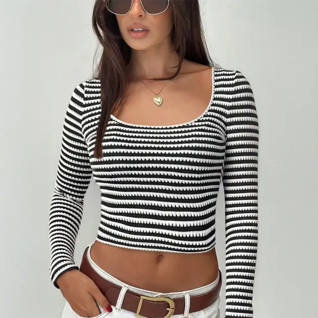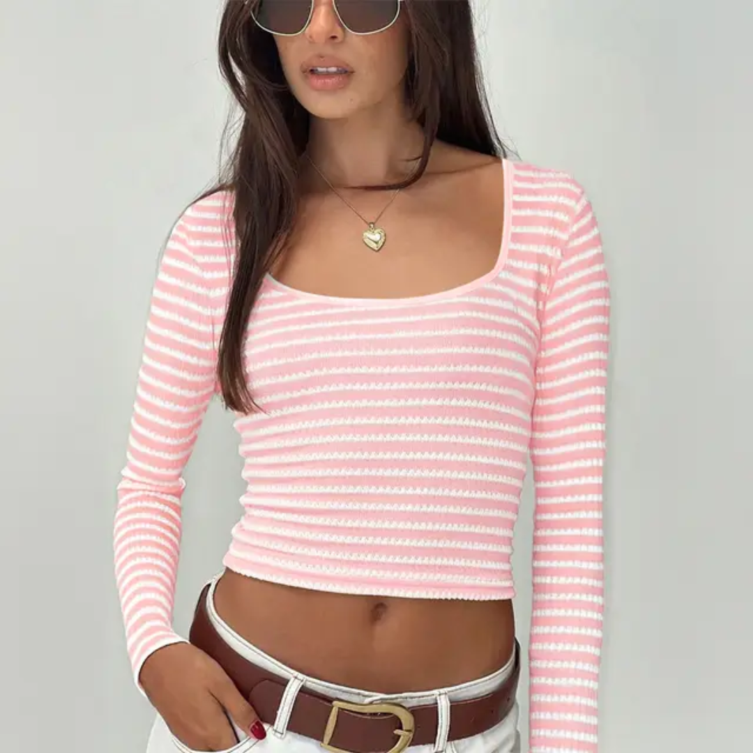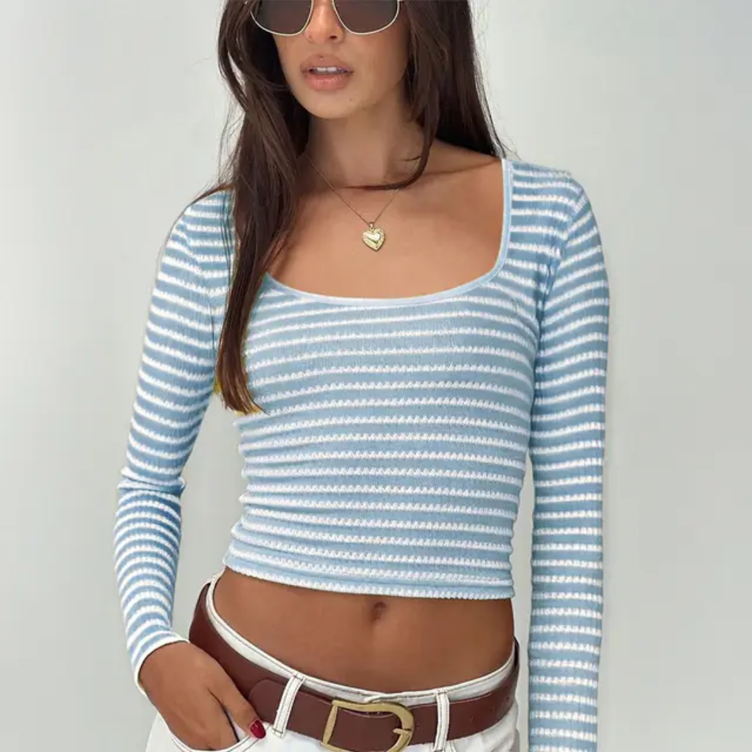 Deixe suas roupas de outono muito mais estilosas com a Camiseta de Manga Longa com Decote em V Listrada. Com um design casual e versátil, ela é perfeita para todas as estações e garantirá um look despojado e moderno. Aproveite o conforto e a praticidade desta peça essencial para o seu guarda-roupa!