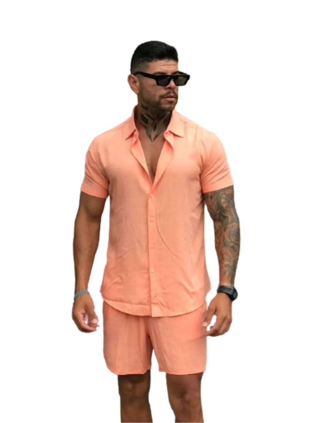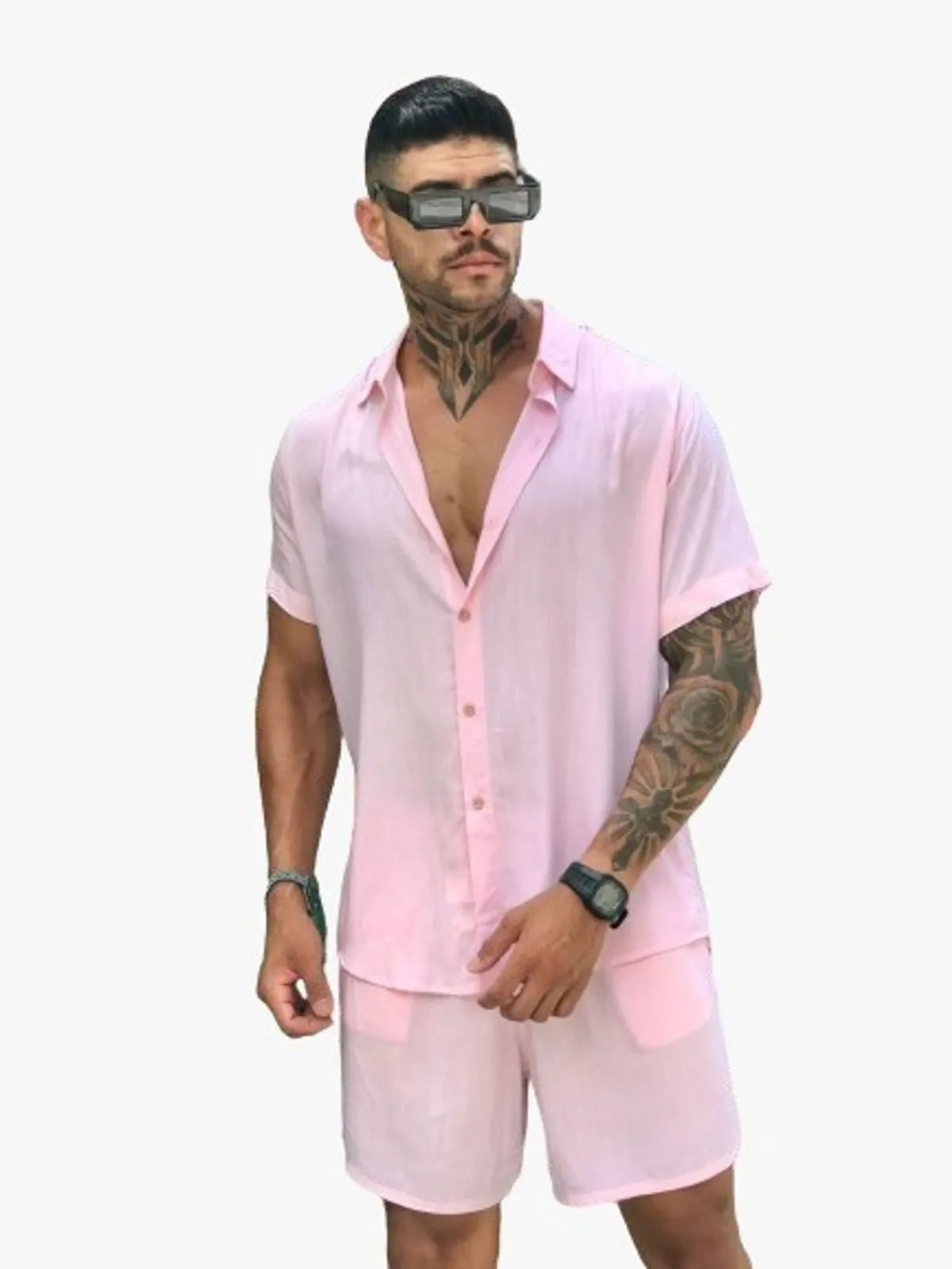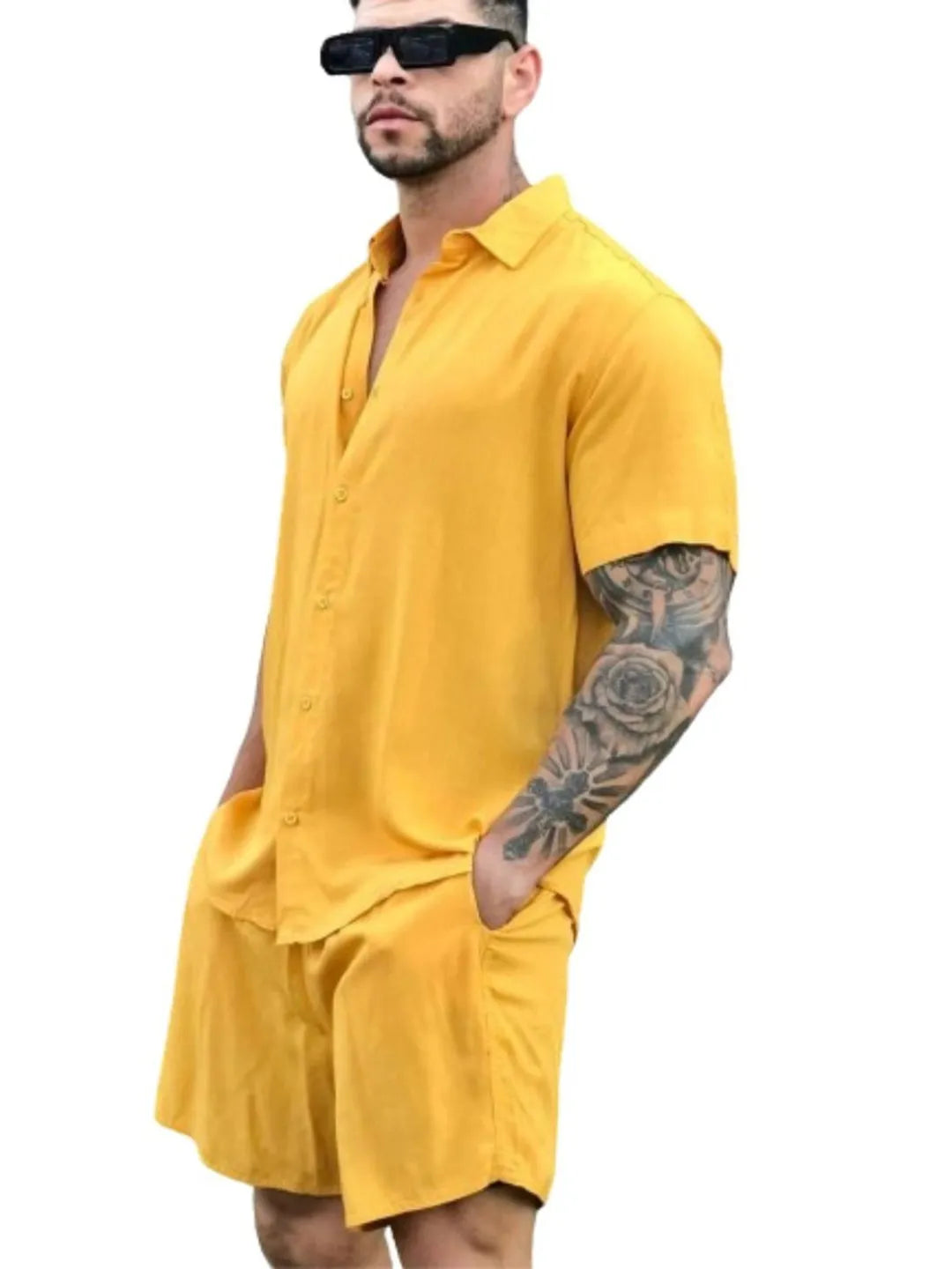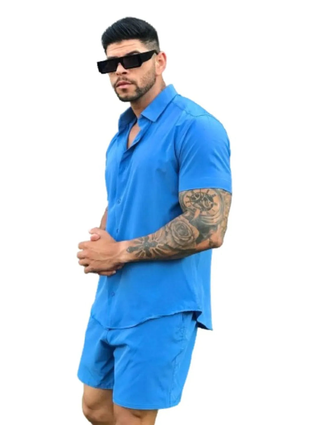 Este conjunto de camisa e short masculino é feito com tecido de viscolinho com elastano, proporcionando um caimento confortável e...