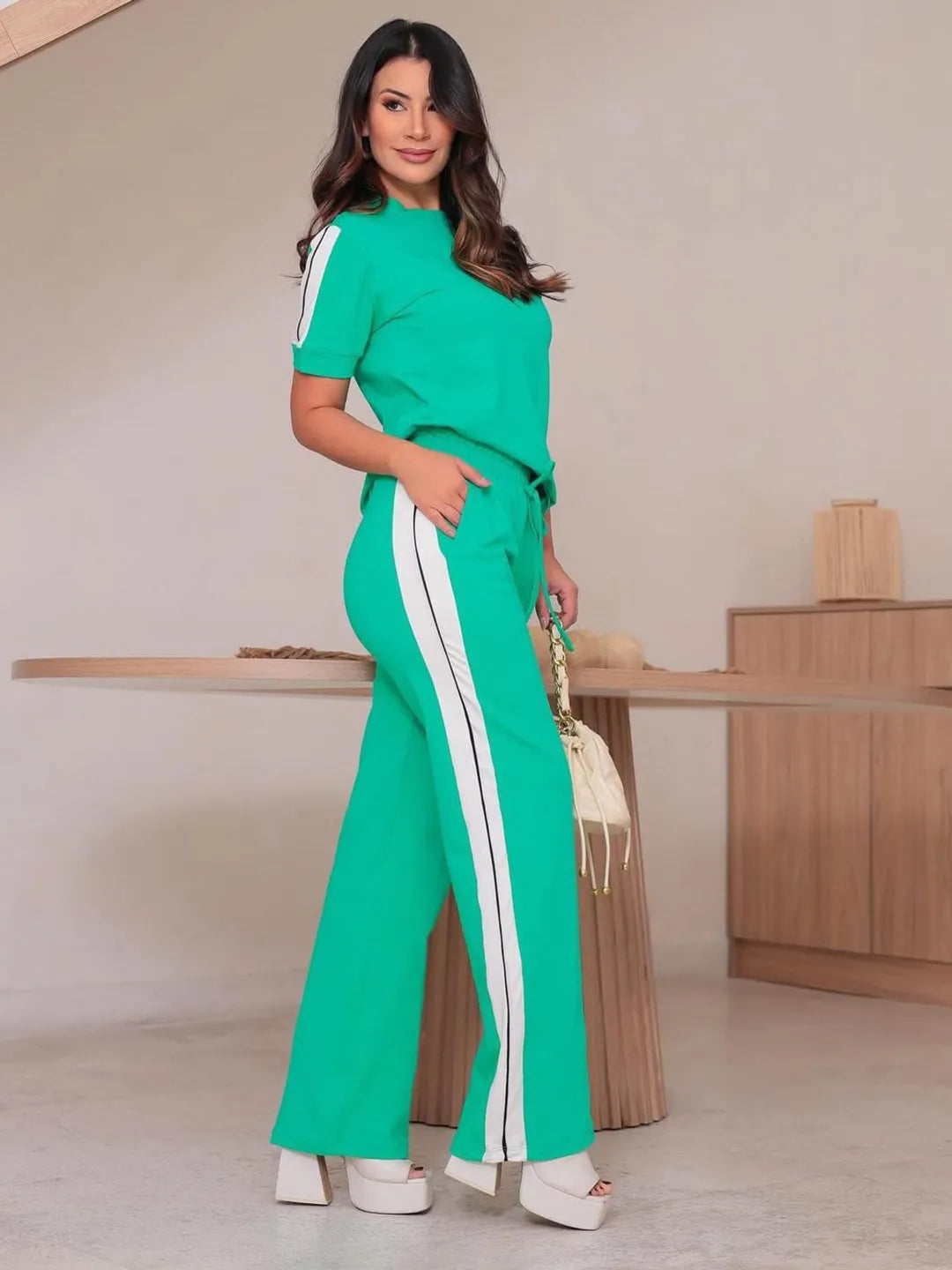 Conjunto Casual de Moletinho Premium Calça Ampla Casual Risca lateral 337