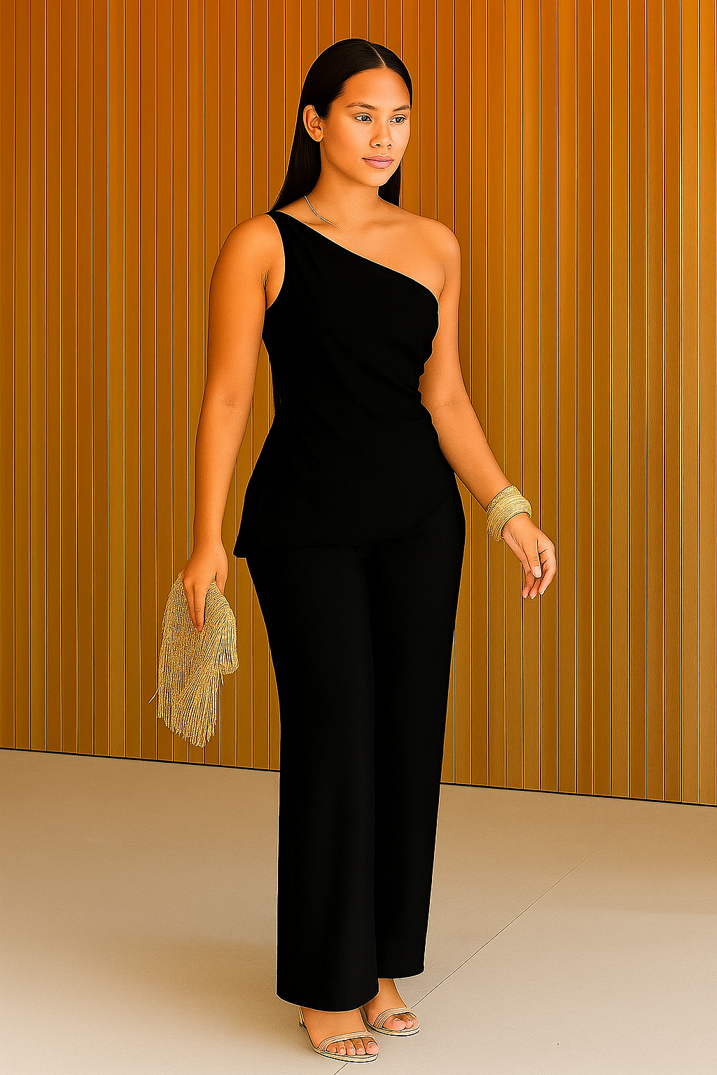 Eleva sua elegância com o Conjunto de 2 peças de calças. Com gola inclinada e um ombro só, é uma peça sofisticada e exclusiva. Perfeito para ocasiões especiais, seu estilo luxuoso irá te destacar em qualquer evento. Deixe sua personalidade brilhar com esse conjunto de calças único.