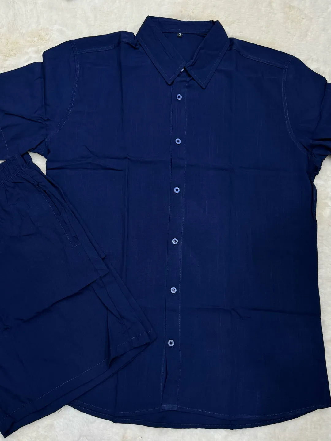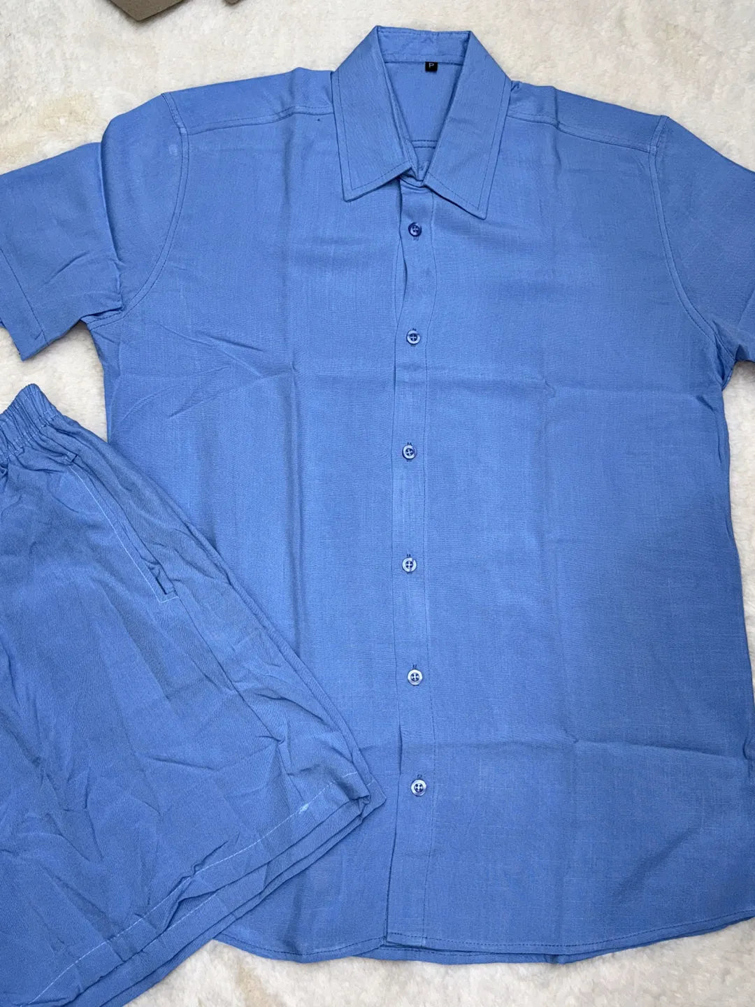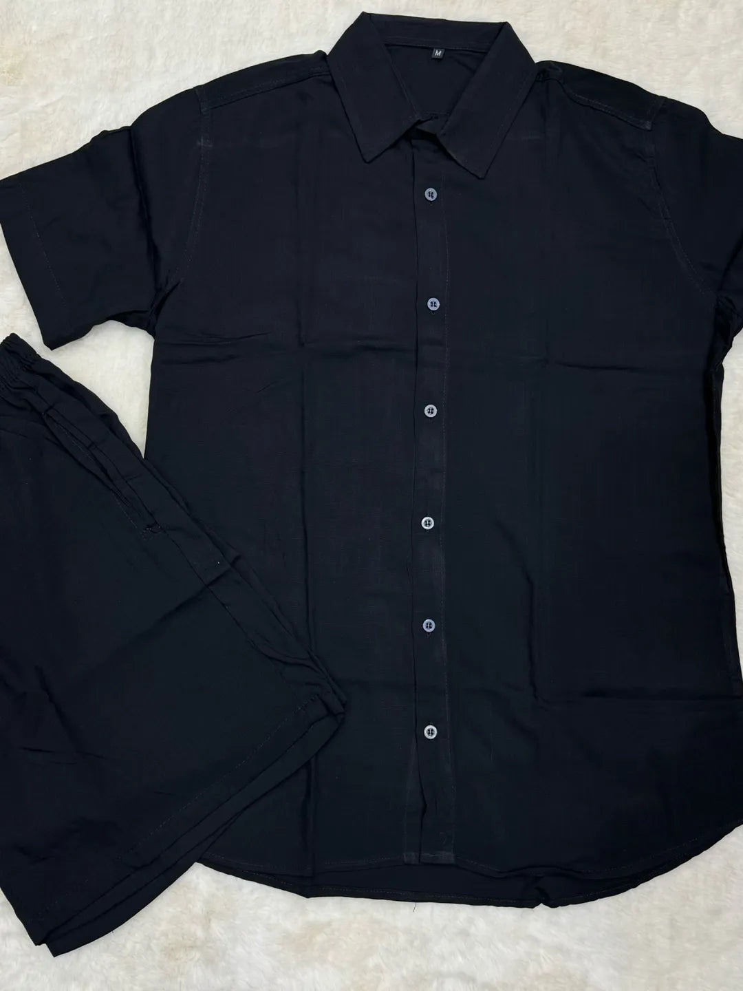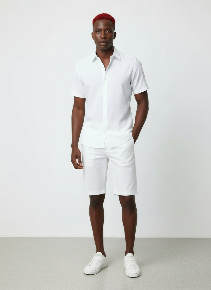 Este conjunto masculino é perfeito para o verão! Feito de algodão macio, possui uma camisa de manga curta com botões...