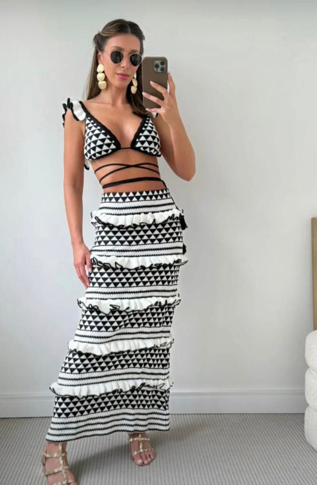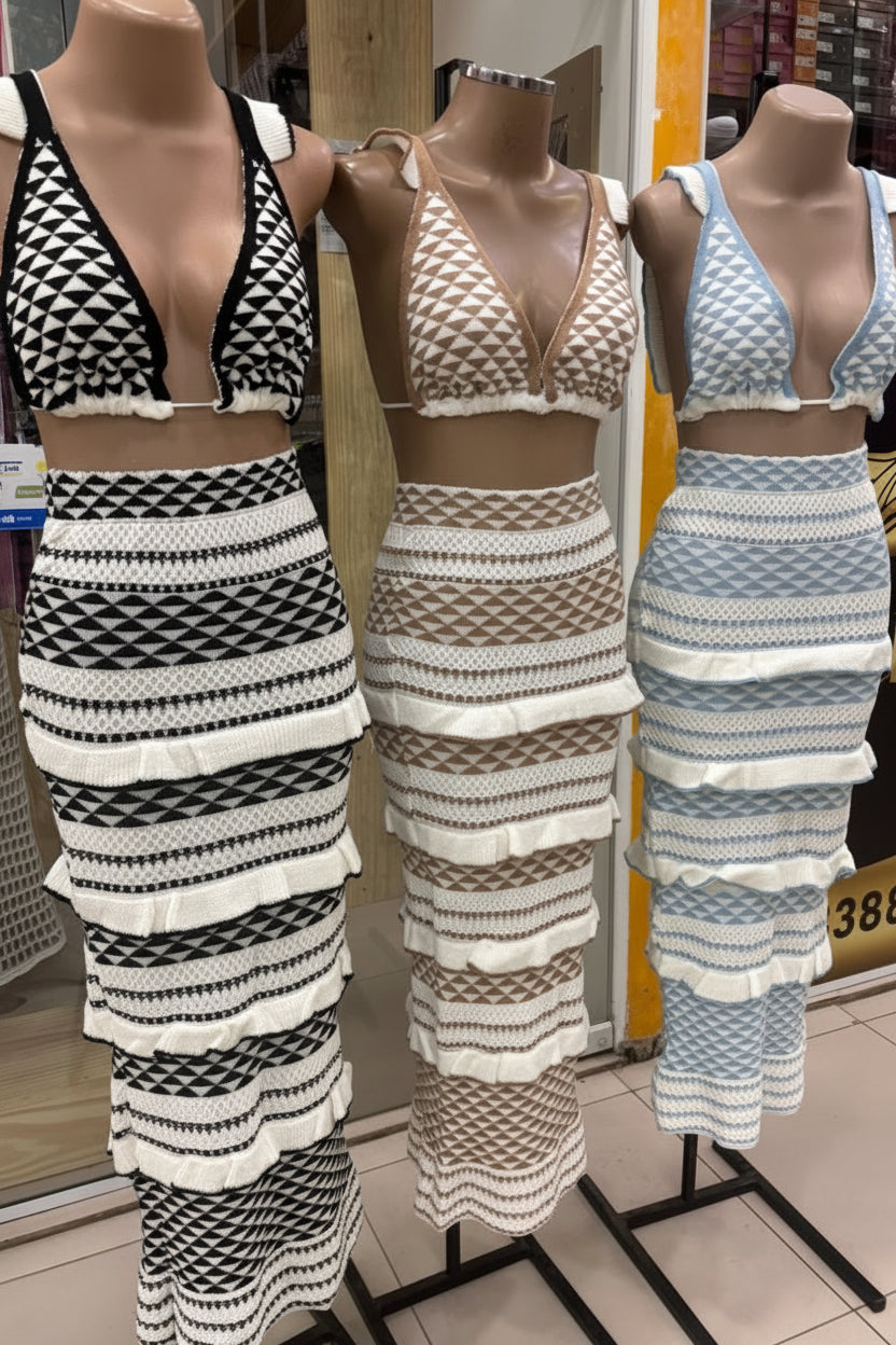 Conjunto Midi Tricot Listrado Lunii Elegante Malha Verão Moda Praia 260