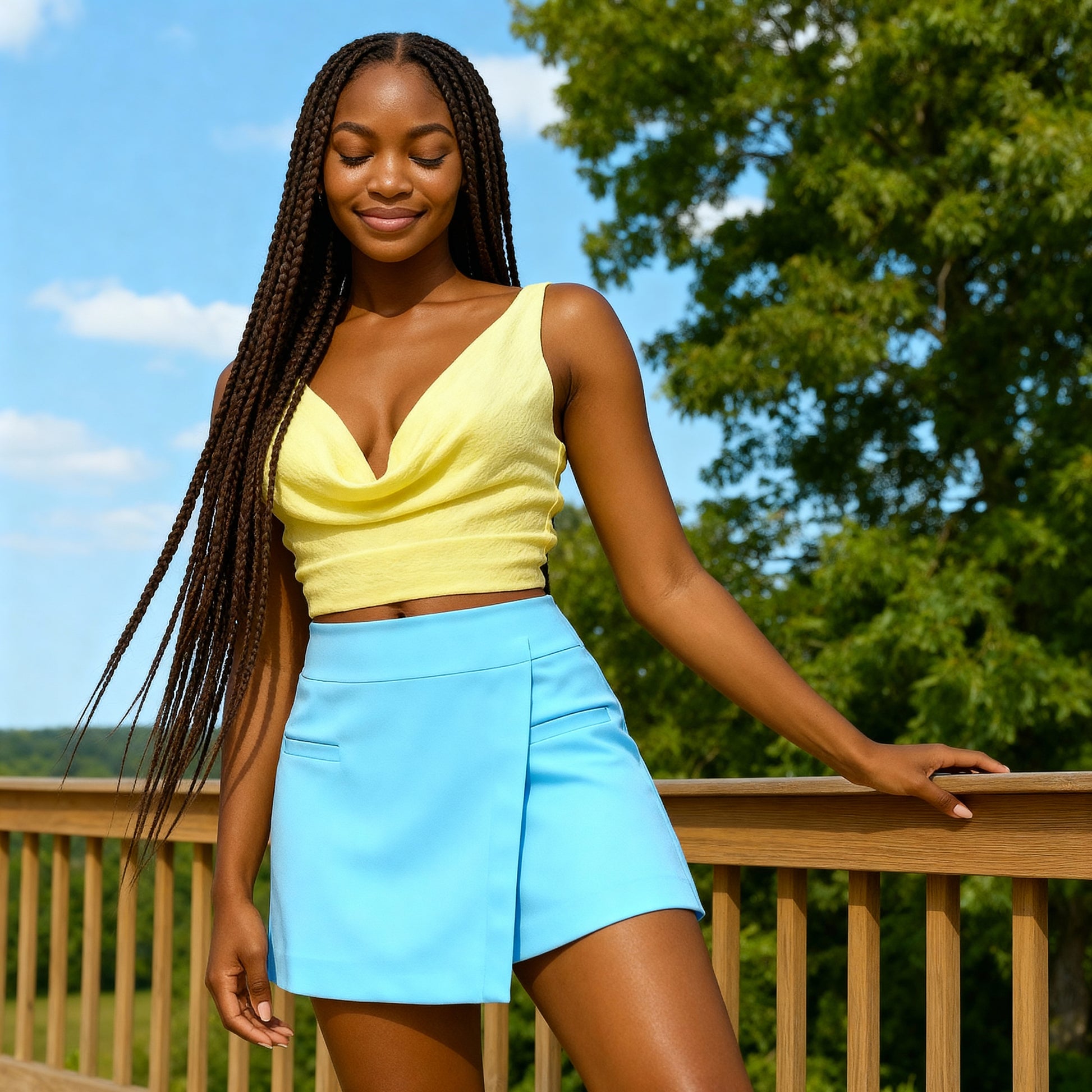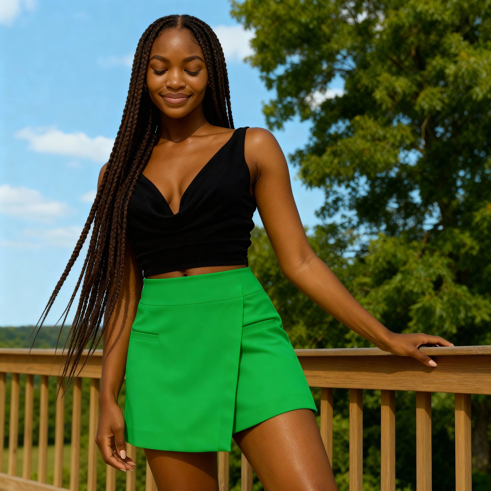 A saia curta envolvente assimétrica em camadas 31 é perfeita para quem quer arriscar e inovar no visual. Seu design assimétrico e em camadas proporciona um estilo único e ousado, ideal para quem busca um look desafiador e cheio de atitude.
