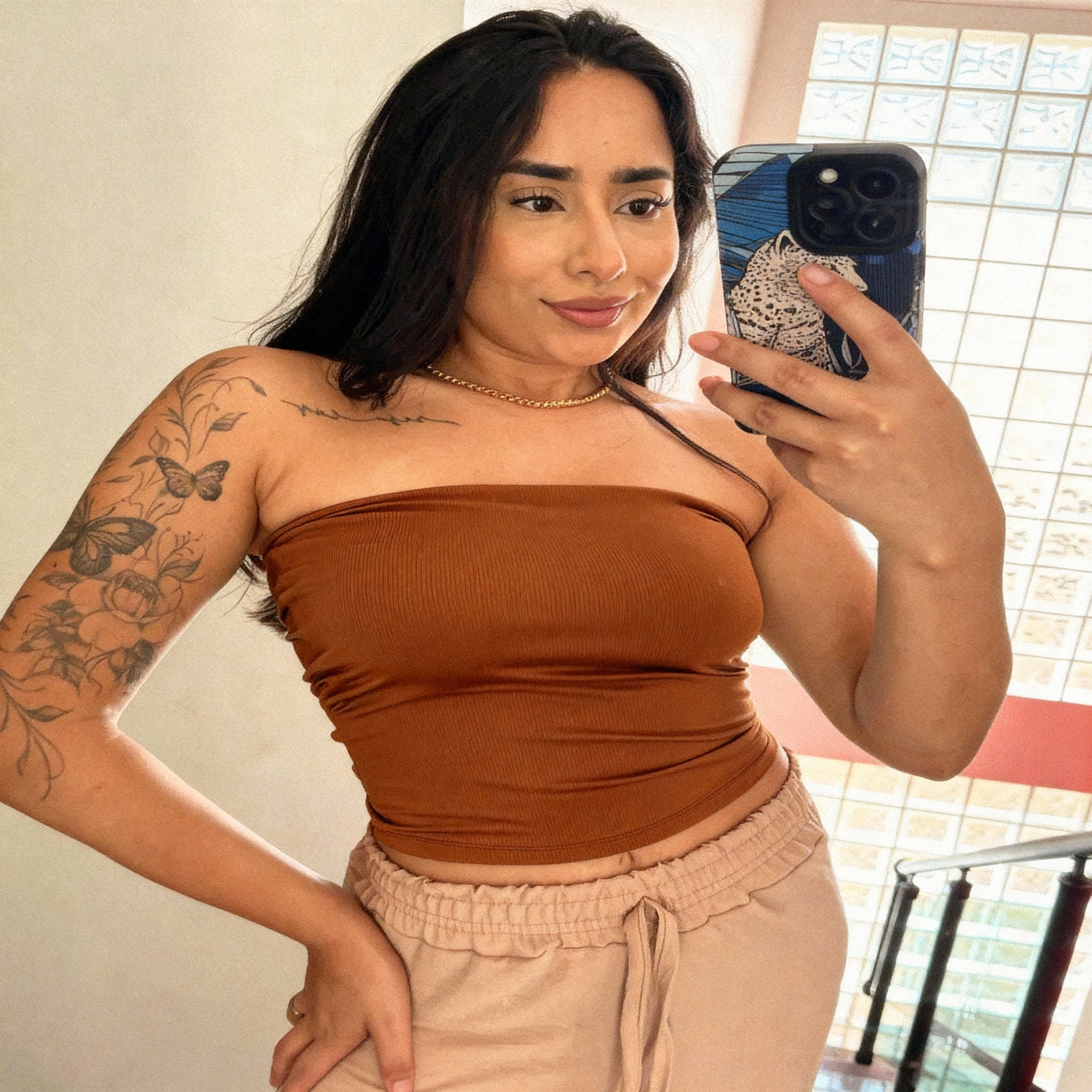 Eleve suas produções com o Cropped Tube Top Feminino Sem Alça e Sem Bojo, que possui dupla camada suplex modeladora para maior conforto e caimento perfeito. Ideal para um look moderno e prático que valoriza o seu corpo. Vista essa tendência e sinta-se confiante em qualquer ocasião!