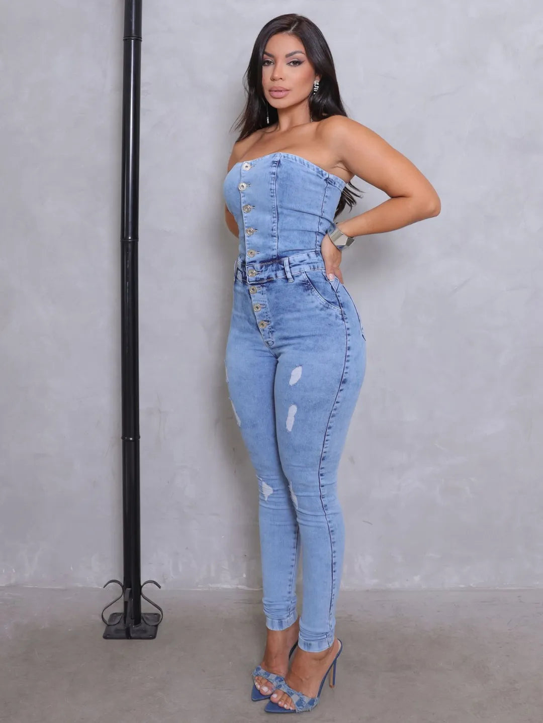 Macacão Tomara que caia Com Elastano Linha 98